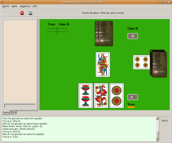 Ecco in anteprima una schermata del gioco della briscola aggiornato col layout suggerito da Domenico Starna.