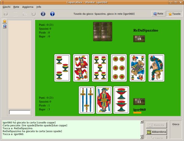 Questa versione consente di giocare allo spazzino, sia contro il cpu che in rete contro avversari remoti. Lo spazzino è una variante della scopa. Le regole del gioco si trovano nella sezione spazzino